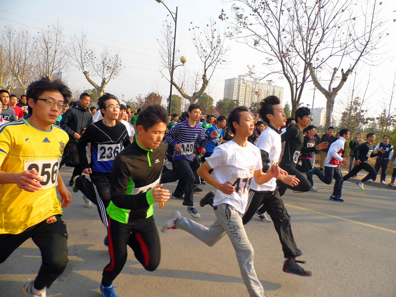 各参赛学院派出15名男女,从东大门出发,沿着体育场——明德楼——教工食堂——图书馆后侧,男生一直往滨江最西跑,女生过了滨江河返回,返回时经过图书馆门前道路,回到起点,各院运动员赛跑用时最少的院系将会胜出。女生3000米、男生4000米的冬季长跑,不仅是一种对运动员的体力和意志的比拼,更是对运动员跑步策略,协作能力的一大考验。
