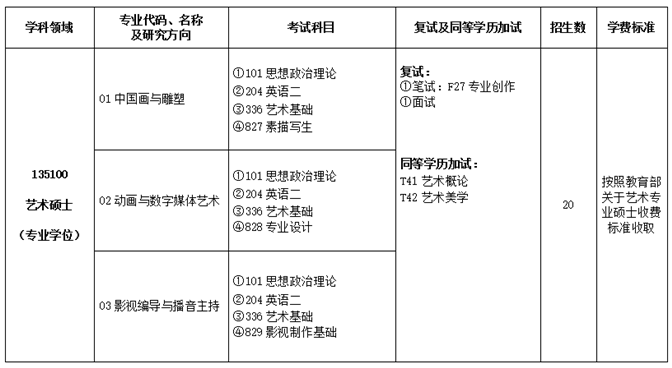 我院艺术硕士(MFA)专业学位,培养适应社会经济、文化和艺术事业发展需要的具有较高水平的艺术创作技能、审美能力和较强的艺术理解力、表现力,能够胜任本专业的各种艺术表现形式的高层次、应用型艺术专门人才。