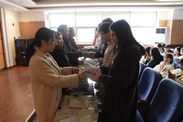 最后,老师们向同学们发放了学院精心准备的考研慰问品。同学们感受到了学院浓浓的关爱,纷纷表示从现在起,紧紧地抓住每一天,振奋精神,顽强拼搏,决战考研!