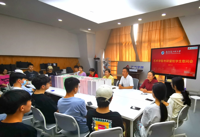 随后参会的老师为考研留校学子发放了月饼等慰问品。