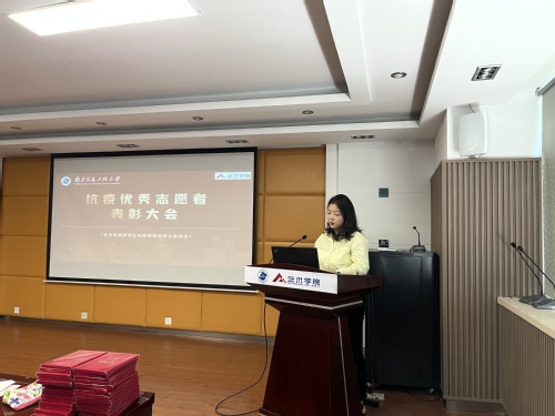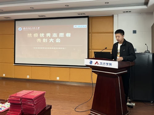 詹筱茹宣读了“优秀研究生抗疫志愿者”的表彰决定,对30位受表彰同学在疫情防控志愿服务中听党指挥、冲锋在前,认真负责,以奉献担当筑牢抗疫堡垒,以实际行动书写青春答卷的行动给予很高评价。