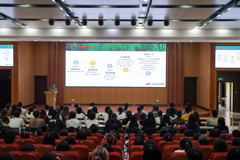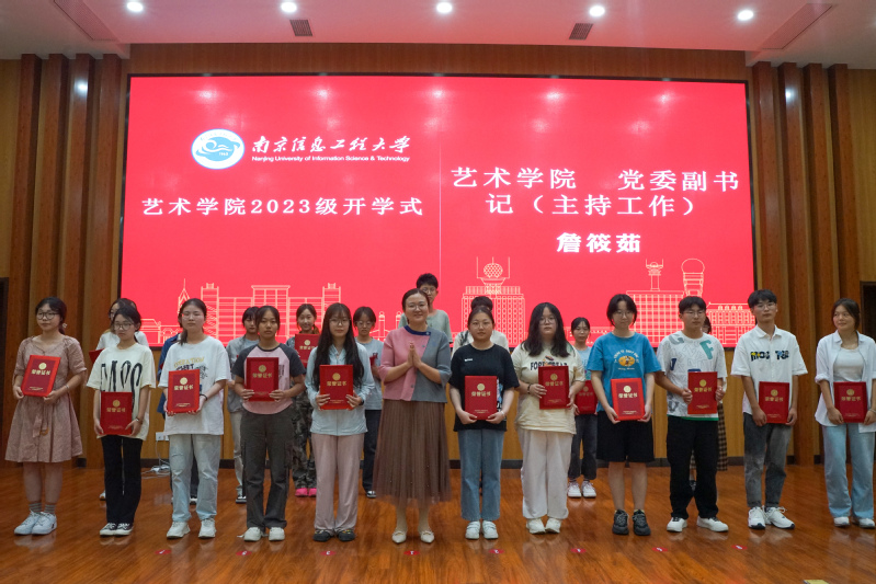 随后,院党委副书记(主持工作)詹筱茹上台讲话。她对新同学的到来表示欢迎,并提出了爱国勤学明德善思等希望。同时她指出,2023年我校艺术类的招生分数线再次攀升,为表彰先进,激励同学,学院授予来自全国14个省、直辖市的20名高分学生院级优秀新生荣誉,并颁发了证书。