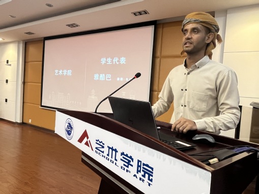 接下来,新生代表雅酷巴同学进行发言,他作为外籍学生对学院开放办学的理念表示衷心的感谢和祝福,希望自己有新的收获。