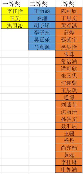 获奖同学名单