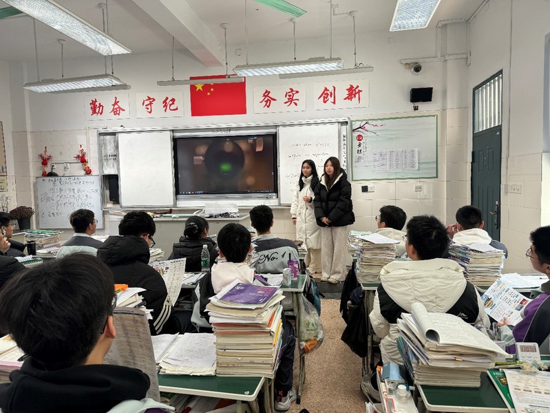 时光荏苒,已阔别母校在南信大求学半年的周叶、李奕洋和宋柳慧同学,体会到南信大历史醇厚、师资强大,心中仍对母校眷恋难忘。报名完成后,团队成员们对此次活动充满了激情,他们早早地与高中班主任联系好,选定时间,准备好材料,做好准备工作,于2024年1月26日在江苏省常州市溧阳市埭头中学开展宣讲活动。