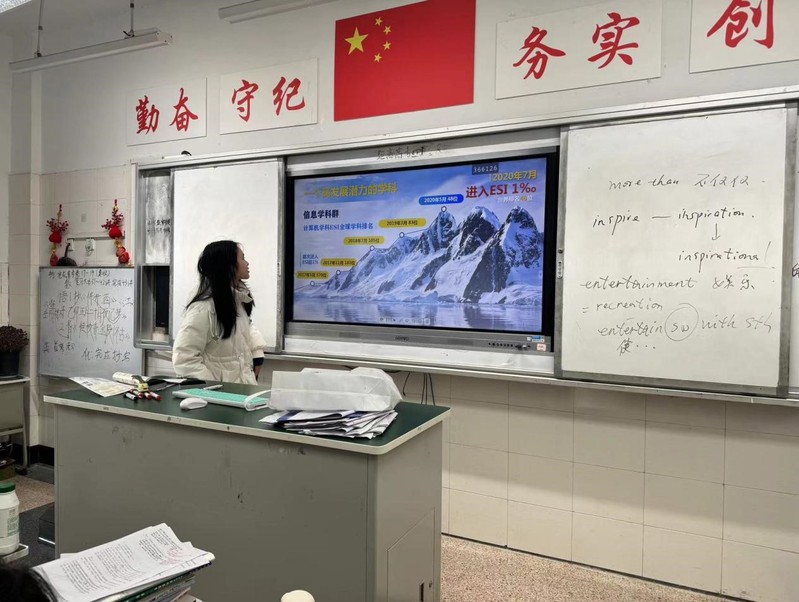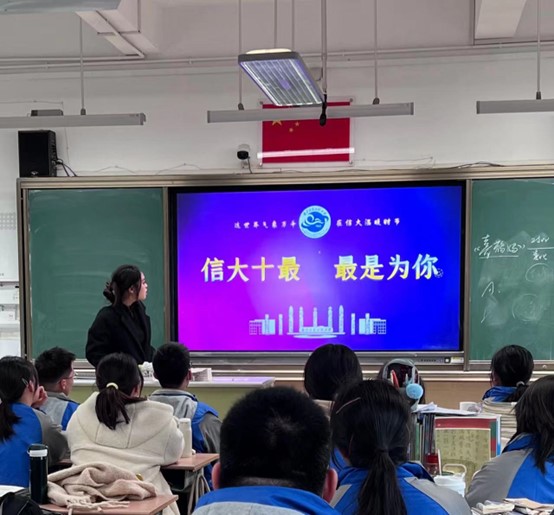 准备环节中,本小组积极联系高中班主任,怀着感恩母校的心愿和传播信大声音、传承信大精神的希望,来到了高三2班,开始了母校行的宣讲活动。