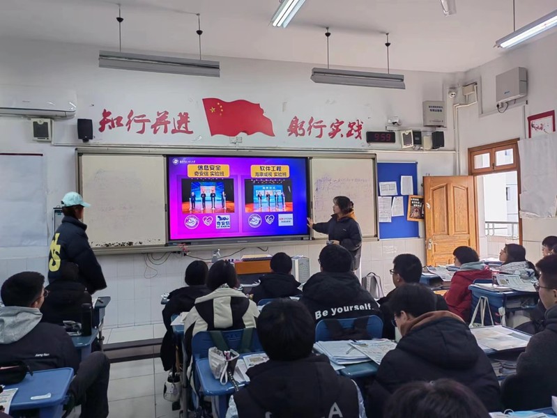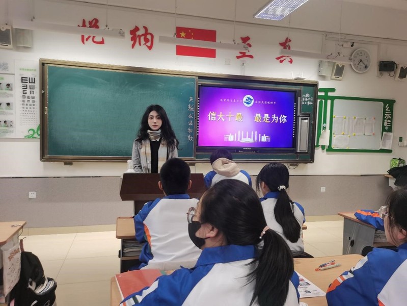 放假后团队于2024年1月16日在二十六中学开展了宣讲。首先为同学们播放了南信大的宣传片,介绍了南信大的生活环境和出行情况,尤其介绍到南信大优越的供暖设施时,同学们赞叹不已,也对我校的游泳馆充满了期待。