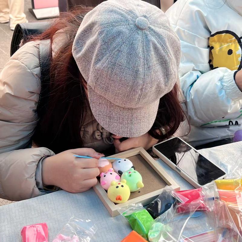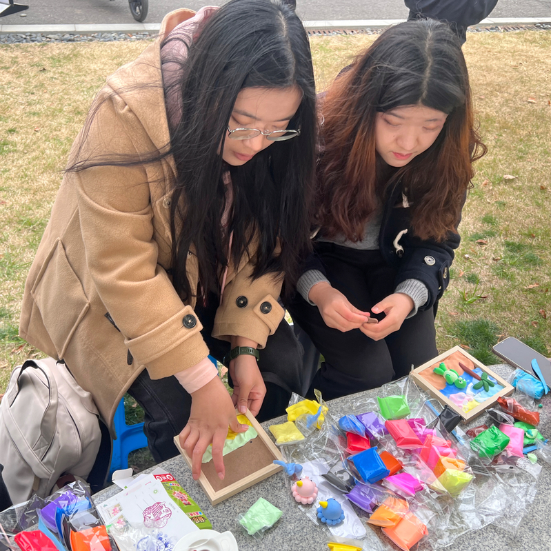 为丰富同学们的活动体验,除了感受非遗文化的魅力之外,学院还策划了粘土手作画活动。通过这一活动,同学们不仅可以亲手制作属于自己的艺术作品,还能感受创造的乐趣。