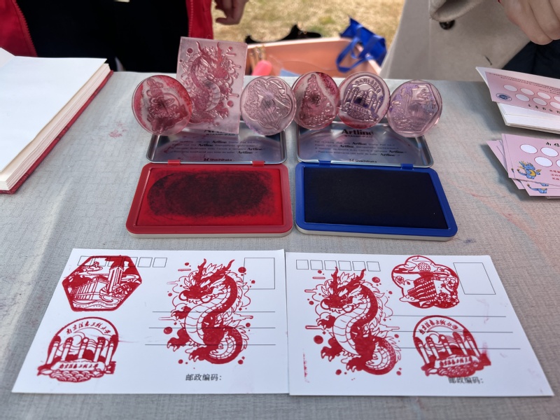 摊位一经布置完毕,同学们立即被非遗这一主题所吸引,纷纷驻足于摊位前。他们排起长队,热情高涨,准备在365英国上市公司的明信片或自己的笔记本上加盖一个富有传统文化的印章。