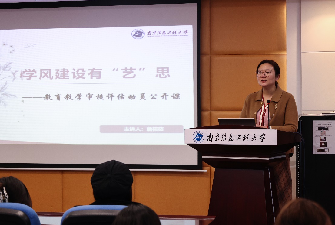 詹筱茹以学风建设有“艺”思为主题,为同学们上了一堂生动的公开课。首先介绍了学校和学院的蓬勃发展史,详细解读了本科教育教学审核评估工作的主体流程与重要意义,希望全体学生高度重视,明确“一根本、两突出、三强化、五个度”的目标,充分认识到学生在评估工作中的重要作用。