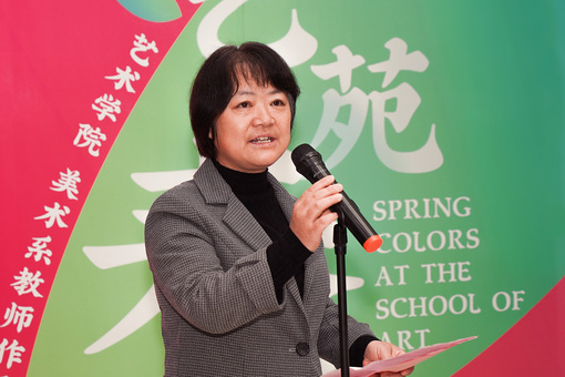 学院院长张可明代表学院全体师生,向领导、嘉宾的到来表示衷心的感谢!她说,“艺苑春色”形容了春日美好的景象,激发了艺术创作的灵感,也寄托了思维绽放的祝愿。展出的每一件作品都是一次心灵的表达,一次对美的追求,也是对生活、社会、文化的思考与感悟。学院将坚持以美育人、以文化人,以一流的团队建设一流的学科,在人才培养、学科建设、国际合作、社会服务等方面做出更大的贡献!