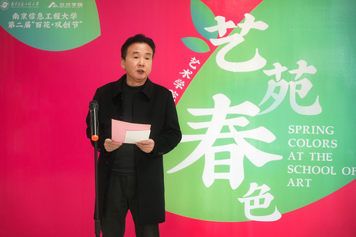 副校长朱大梅代表学校向展览的举办表示祝贺,向嘉宾的到来表示欢迎。她指出,展出的作品展现了南信大百家争鸣的艺术氛围,增强了校园的文化内涵。这不仅是打造公共审美文化空间的新举措,也展现出全院师生艺术精进的良好态势。希望学院师生坚定文化自信、坚持守正创新,创作出更多优秀的作品,为建设社会主义文化强国做出新的更大的贡献。