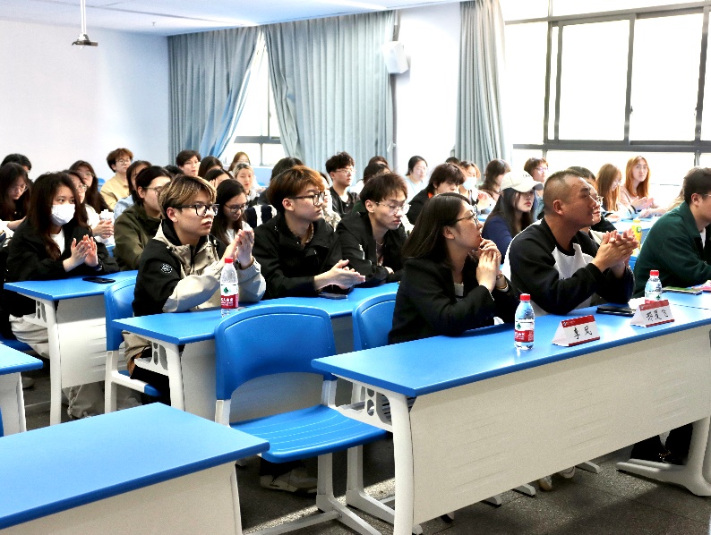 宣讲会现场,南京唯晶信息科技有限公司人事总监李凤、南京西西里文化传媒有限公司副总经理邢夏飞分别向同学们介绍了企业发展历程、运作模式、产品研发和经营业务等情况,并结合自己学习、奋斗的故事和心得,并就社会责任、职业规划等话题进行互动。