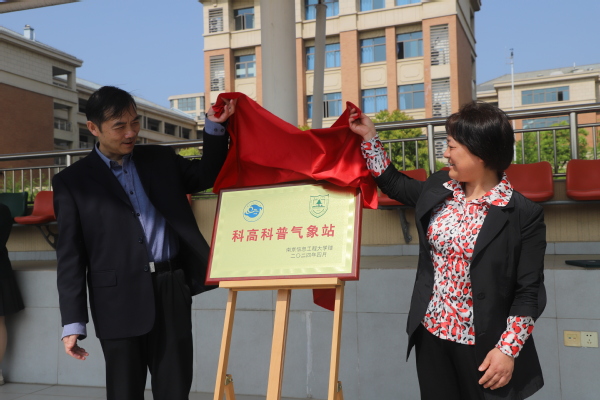 开幕式上,朱校长发表《双高合作育英才》的讲话。朱校长首先代表南京信息工程大学对秦淮科技高中人才培养的丰硕成果表示热烈的祝贺,同时衷心感谢秦淮科高为我校输送优质生源。朱校长向科高全体学生介绍了我校的基本情况并欢迎科高学生报考我校。开幕式最后,朱校长和南师附中秦淮科技高中执行校长徐国民共同为“科高气象科普站”揭牌。气象科普站依托南信大赠送的气象站开展高中气象科普活动,增加中学生对气象知识的了解,培养中学生对气象的兴趣,是南京信息工程大学与中学校园文化沟通的桥梁。