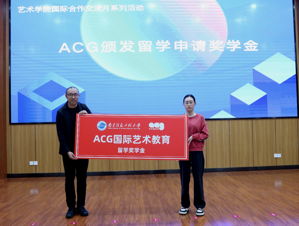 随后,ACG吕斯文给优秀留学毕业生颁发留学申请奖学金,并向同学们介绍了ACG国际艺术教育相关情况并公布南信大奖学金计划,并表示会全力协助我校学生进一步提升学历层次,拓展出国(境)的渠道。