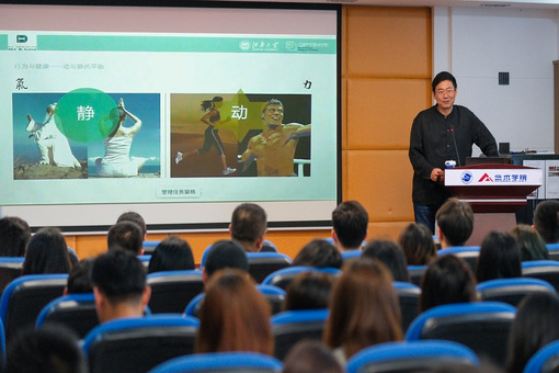 首先,邓嵘介绍开讲主题是设计引导健康的一个持续生活方式。随后,通过一个企业转型例子,他与在座的老师和同学们讨论交流了有关从行业到领域转变的现象,并提出设计必须要关注我们未来的新兴领域和新兴产业的发展。接着,他向大家介绍了知识构架转型、产业设计专业课程体系构架、核心课程等方面的情况。