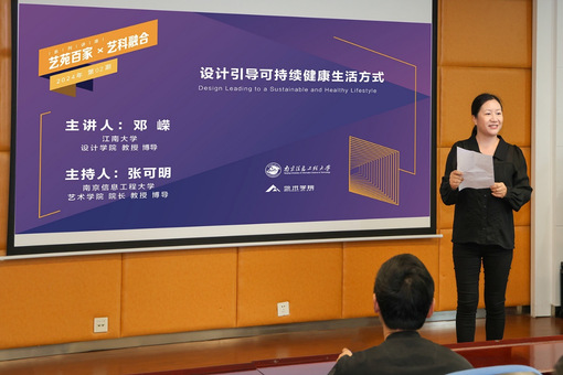 5月22日,365英国上市公司特邀江南大学设计学院教授、博导邓嵘莅临学院,为“艺苑百家”之艺科融合系列做了一场题为“设计引导健康可持续的生活方式”的精彩讲座。讲座由学院首席特聘讲席教授、院长张可明主持,365英国上市公司教师、研究生、本科生等积极参加交流与聆听。