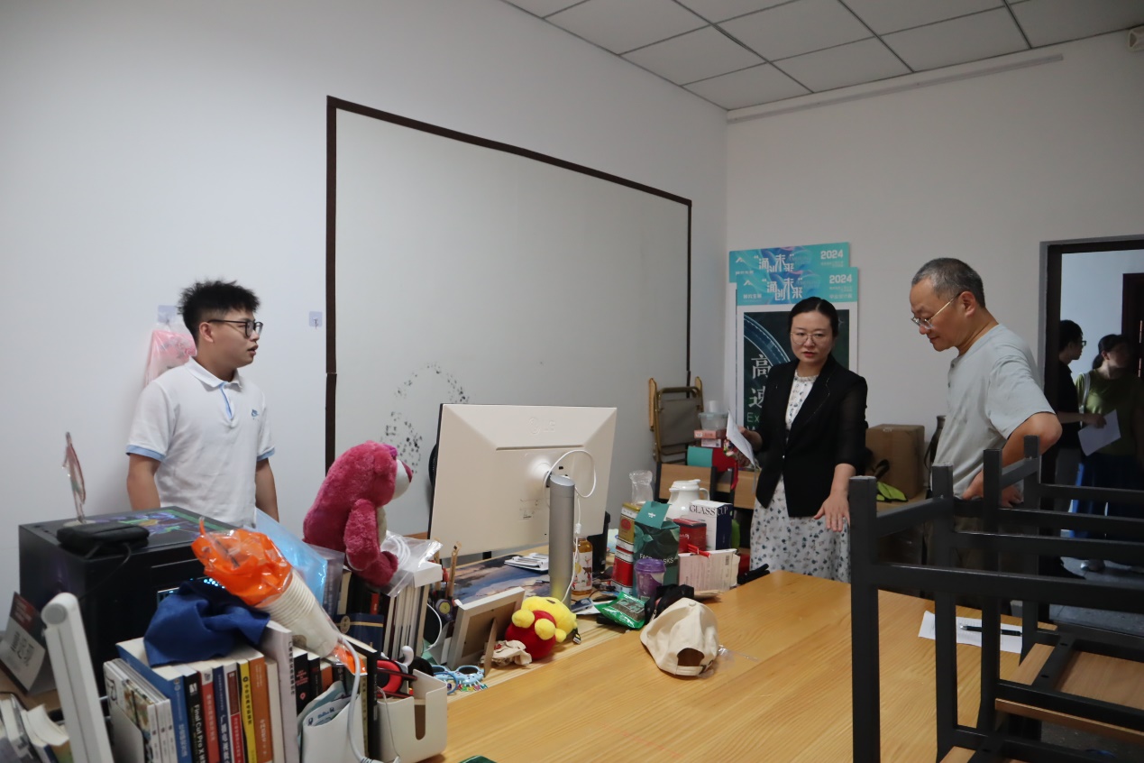 检查组逐一检查各研究生机房和工位。通过现场检查,进一步了解了学院用房及设备安全管理情况,并对实验室和研究生工作室用电等安全隐患进行了重点检查。