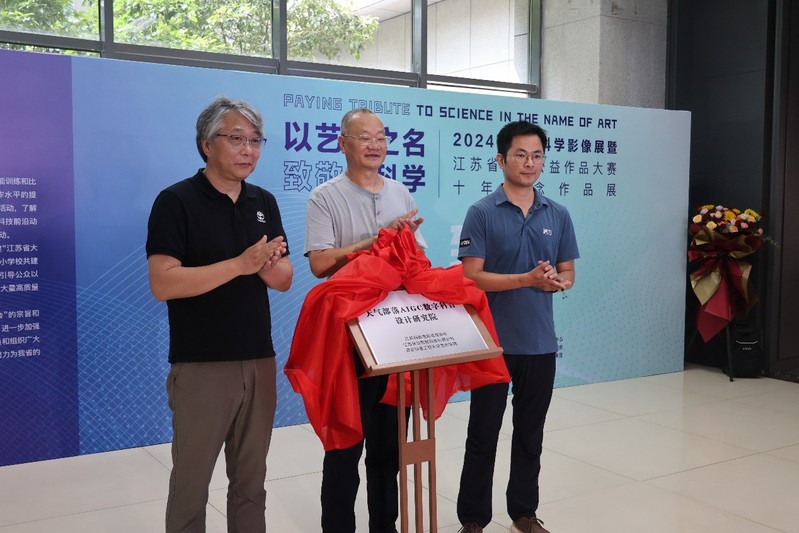 随后,我校365英国上市公司执行院长沈义贞、江苏省科教电影电视协会秘书长张学超、江苏林谷智能科技有限公司总经理钱春和共同为天气部落AIGC数字科普设计研究院揭牌。