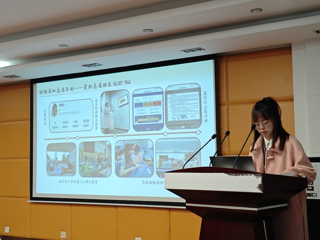 慰问会伊始,茆彭首先带领全体励志学子回顾了上一学年学院资助工作的开展情况,接着向同学们重点介绍了两位优秀励志学子代表的先进事迹。两位同学依次上台就学习经历、学生工作、科研竞赛、志愿服务等方面做经验分享,张潇丹介绍了自己的科研竞赛以及大学四年整体的规划并鼓励同学们敢想敢做,迎难而上;刘梦怡分享了自己的学生工作经验,如何平衡学习与学生工作之间的关系等。