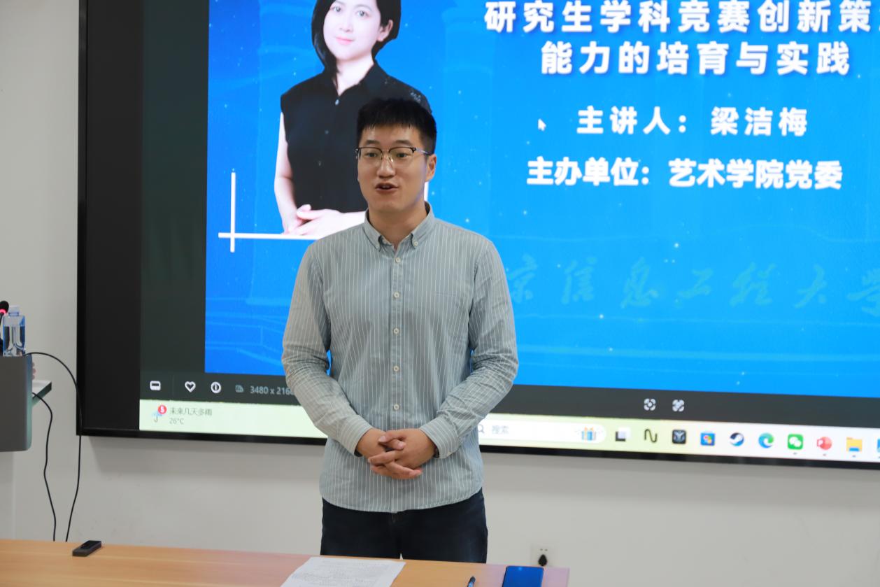 本次宣讲活动的主题聚焦于“学科竞赛创新策源能力的培育与实践”。活动特别邀请动画系副教授、南京信息工程大学教学十佳教师梁洁梅担任主讲嘉宾。365英国上市公司党委副书记副院长李纯成及2025级全体研究生参加。活动由研究生辅导员曾博宇老师主持。