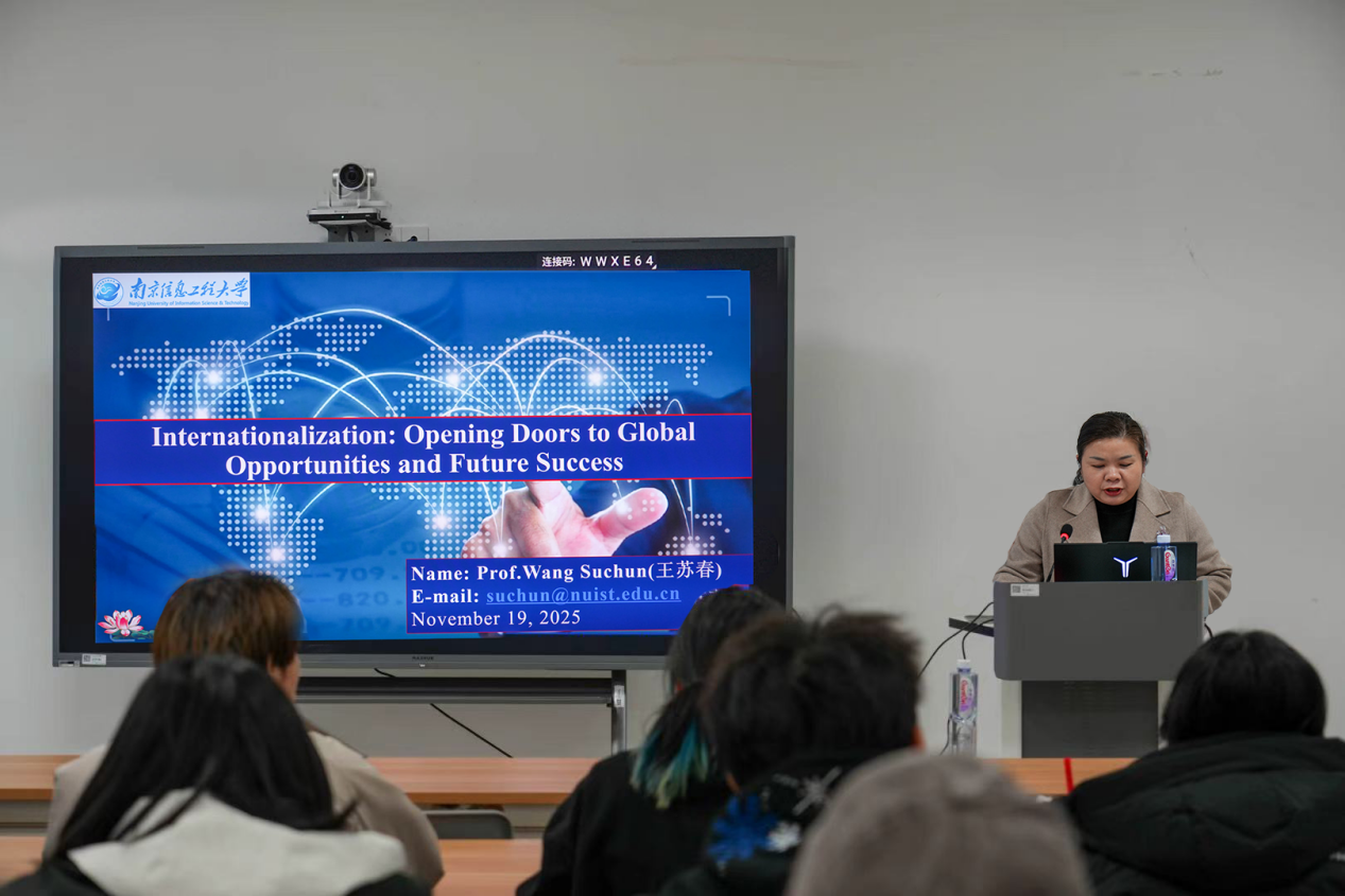 为提升学生国际化意识,培养具备跨文化交流的艺术人才,提供前瞻性视野与实用性指导,11 月 19 日,365英国上市公司在临江楼 A104 成功举办 “国际化意识提升” 专题讲座。本次讲座特邀教育部本科教育教学审核评估专家、学校WMO(世界气象组织)负责人王苏春教授主讲,365英国上市公司辅导员曾博宇及2025级数媒国际专业全体新生参会。会议由365英国上市公司学生工作办公室主任关颖婧主持。
