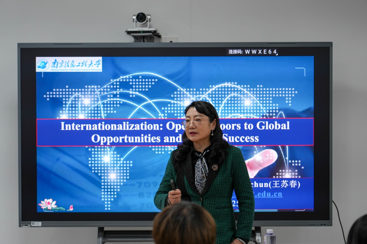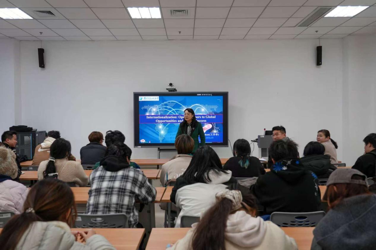 此次讲座以“国际化:开启全球机遇与未来成功之门”为主题,王苏春全程以英文授课,深入剖析国际化的内涵、必要性及实践路径。在 “解码国际化” 环节,她指出,国际化意味着接触多元文化与思想,学习不同国家的思维与生活方式;要着力培养全球胜任力,提升语言技能、团队协作与问题解决能力;要主动构建国际网络,结交各国友人;更要积极把握全球机遇,参与各类留学交流项目。谈及 “拥抱国际化”,她强调,这一过程能帮助学生锤炼职业技能、获取前沿知识、增强自信信念,不仅能争取更多优质工作机会,更能在跨文化合作中实现共同挑战、共享成果、相互支持。而在 “融入国际化” 方面,她提出三点核心建议:一是秉持好奇之心、怀揣热忱之志、直面未知挑战、守护身心健康这四种关键人格特质;二是夯实英语基础,勤练跨文化交流技巧;三是尊重文化差异,秉持求同存异理念,深耕全球化意识。
