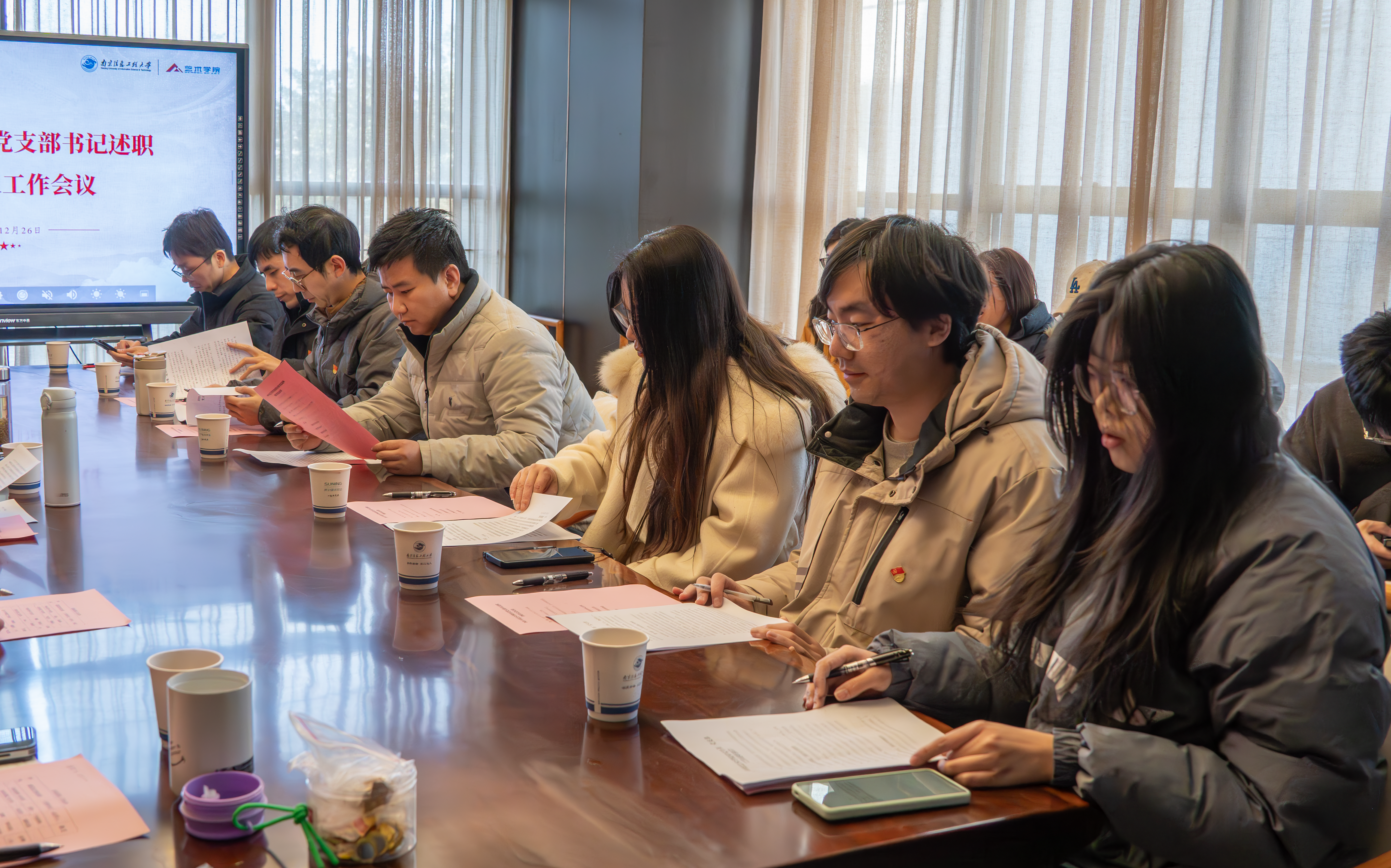 述职结束,詹筱茹对各党支部一年来取得的突破与特色成效予以充分认可,结合学院党建实际,她提出四项工作要求:一是抓整改,严格落实省委巡视反馈意见的整改、省纪委监委纪检监察建议的整改、高校领域突出问题系统整治和校内巡察反馈意见的整改;二是强学习,聚焦二十届四中全会精神和国家十五五规划的学习贯彻,严格落实“三会一课”,紧跟党的理论成果与时俱进开展学习;三是创特色,依托艺术特色打造美术馆校园文化阵地,开展系列红色主题展演,拍摄气象家精神传承系列微党课,聚焦培育党支部特色品牌;四是促规范,举办加强高校基层党组织建设规范的专题培训,夯实党建基础。