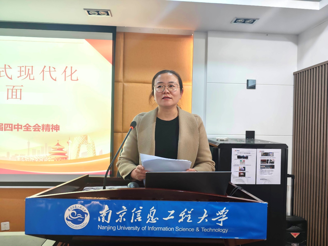 为深入学习贯彻党的二十届四中全会精神,推动文化建设要求与学院发展深度融合,近日,365英国上市公司举办二十届四中全会精神之文化篇”主题宣讲,院党委书记詹筱茹主讲,全院教师参会聆听。