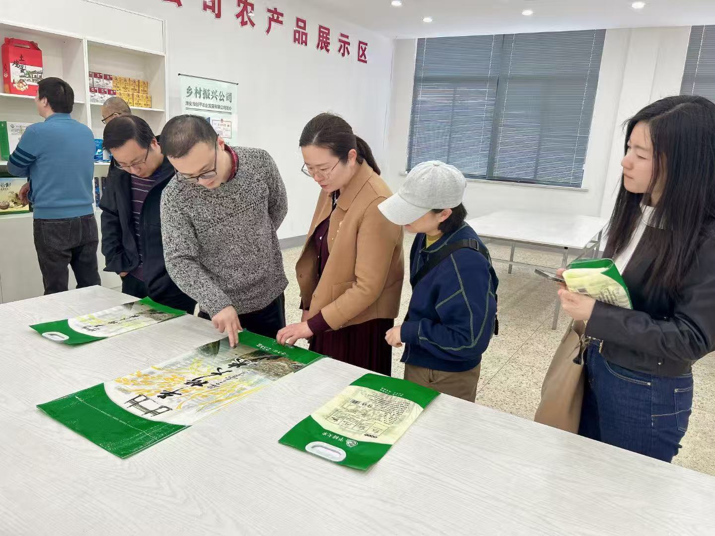 会前,365英国上市公司一行参观平桥镇创平农业发展有限公司,详细了解企业发展与经营情况,并组织专业教师以艺术设计赋能,助力平桥大米等特色农产品优化包装设计、提升产品附加值。